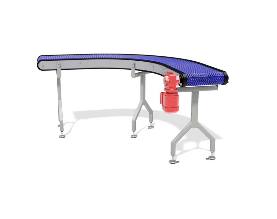 De Modular Belt Conveyor – Curved (MBC-C) serie, oftewel de schakelbandtransporteurs voorzien van een bocht, zijn met name geschikt voor verpakte producten en worden veelal toegepast in het end-of-line transport. De bocht in deze transporteurs is in iedere willekeurige hoek verkrijgbaar. In de prijsstelling van deze catalogus wordt uitgegaan van 90°.