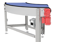 Naast end-of-line transport wordt deze transporteur ook toegepast voor zakken en dozen transport. De bocht is standaard verkrijgbaar in 45°, 90° en 180°